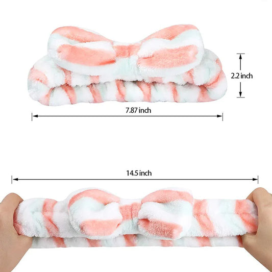 Cute Dot Striped Bow Coral Fleece Soft Headband For Women Girls Face Washing Makeup